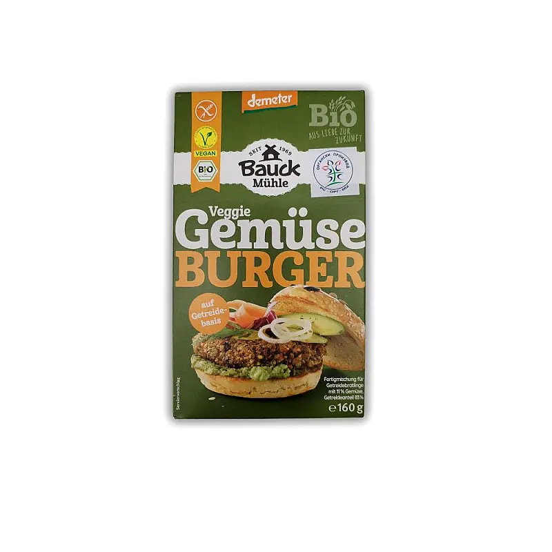 Uživajte u brzom i ukusnom obroku sa Bauck Mühle gotovom mešavinom za organski burger od povrća bez glutena. Ova mešavina je idealna za sve koji žele da pripreme zdravu hranu u samo nekoliko minuta. Napravljena od pažljivo biranog povrća i začina, gotova mešavina za burger ne sadrži gluten, konzervanse niti veštačke dodatke.