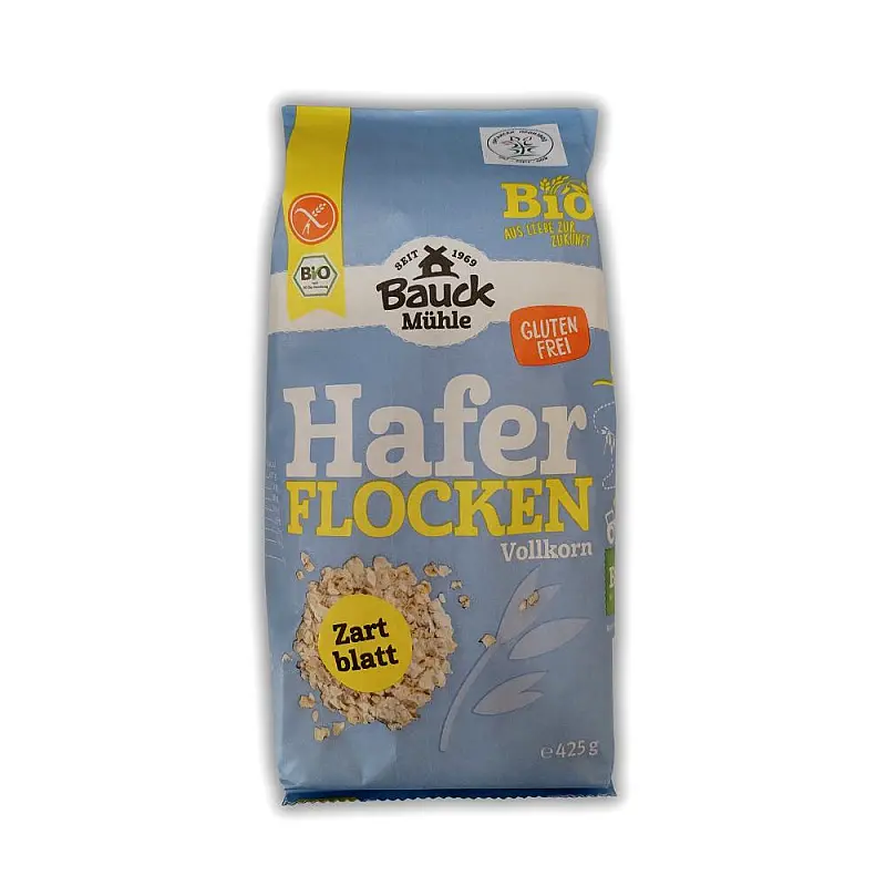Bauck Mühle Hafer FLOCKEN organske ovsene pahuljice bez glutena napravljene su od visokokvalitetnog ovsa iz biodinamičkog uzgoja. Sitno mlevene ovsene pahuljice su organske i gotovo neprerađene pahuljice celog zrna. Brz su, hranjiv i zasitan obrok koji možete jesti ujutro za energiju koja će Vas održati tokom celog dana. Nastaju procesom omekšavanja ovsa između valjaka, nakon čega se suše. Bauck Mühle Hafer FLOCKEN organske ovsene pahuljice nutritivno su jako slične celom zrnu ovsa, ali se brže pripremaju, potapaju i nabubre.