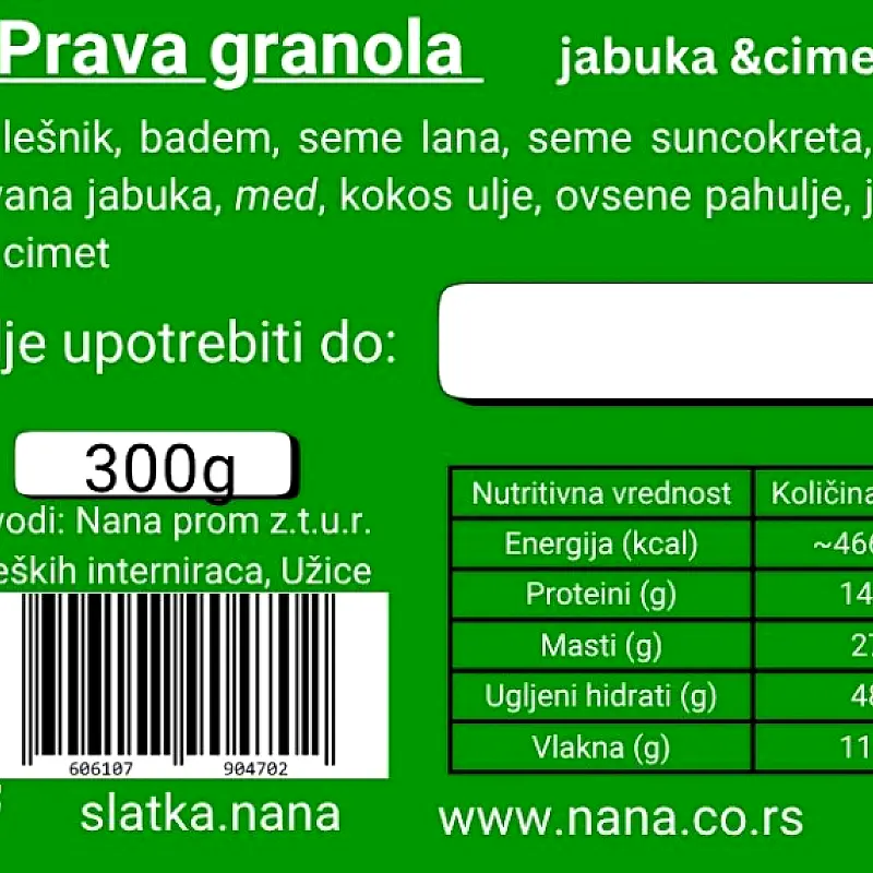 Nanina granola je idealna za sve koji žele hranljiv, ukusan i praktičan obrok, bilo da ste kod kuće, na poslu ili u pokretu.